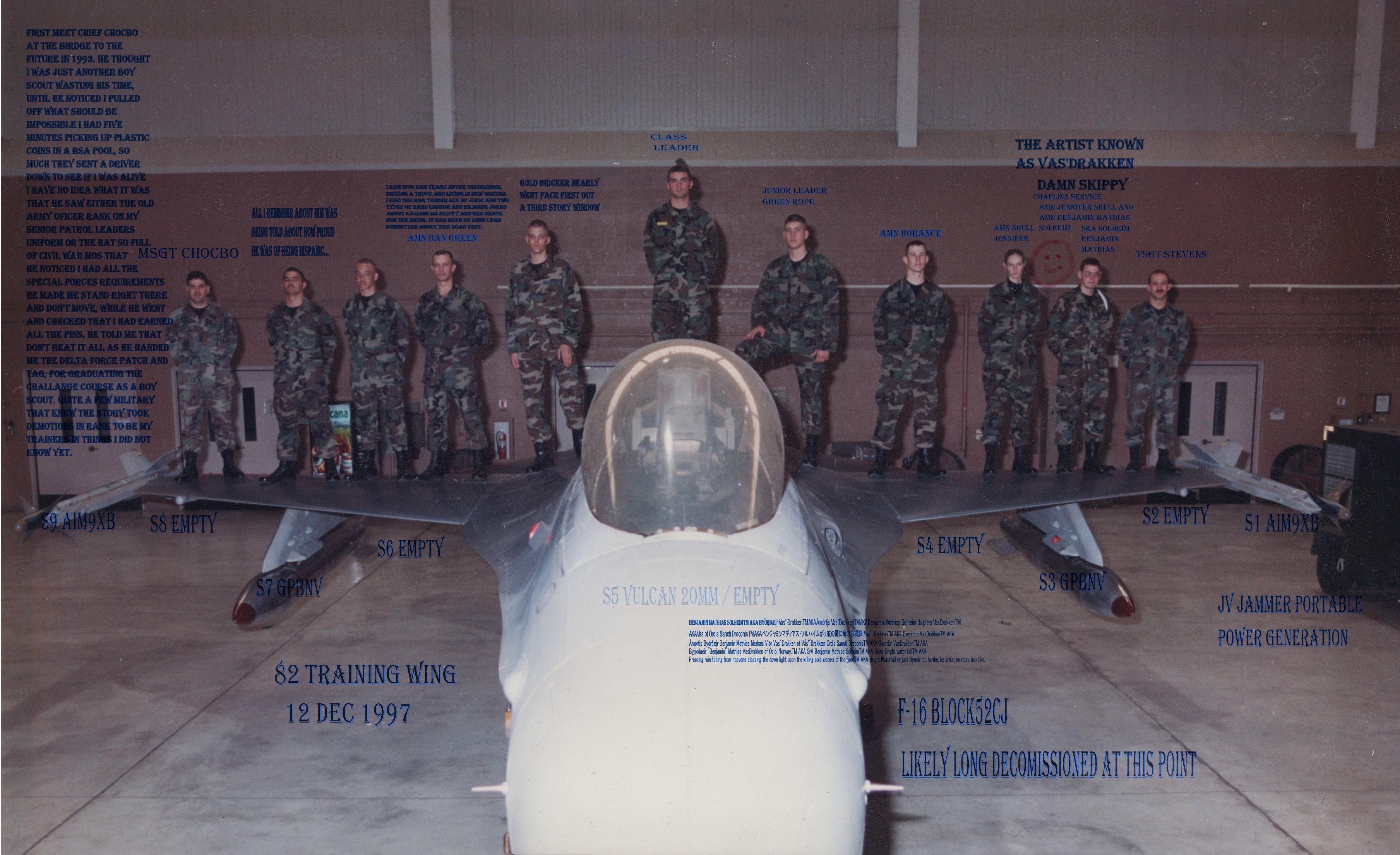 This was my F-16 Block 52 I flew and the load crew is pictured below. The joke is Major General Sai Vitchia is picture above and Airman Solheim below... as above so below... I have no idea where the gas mask inserts